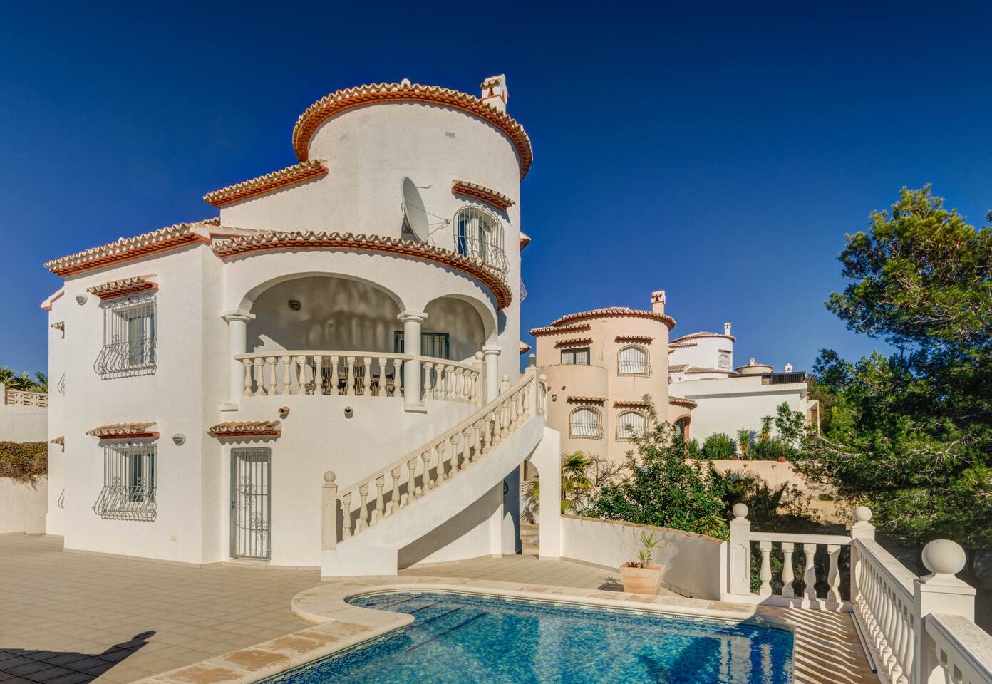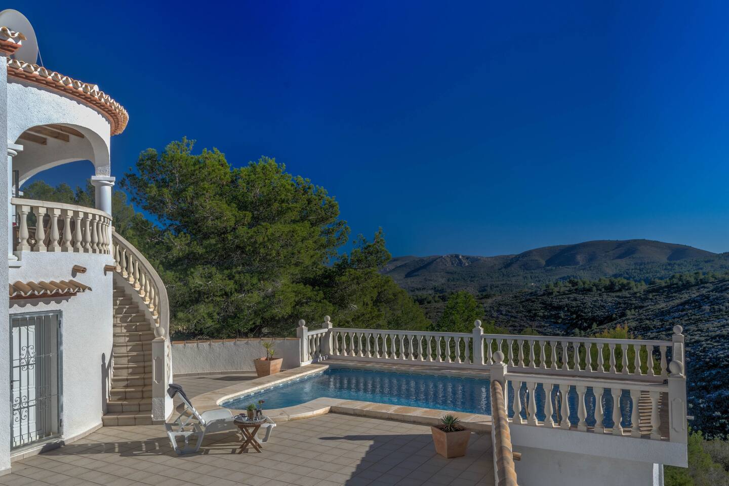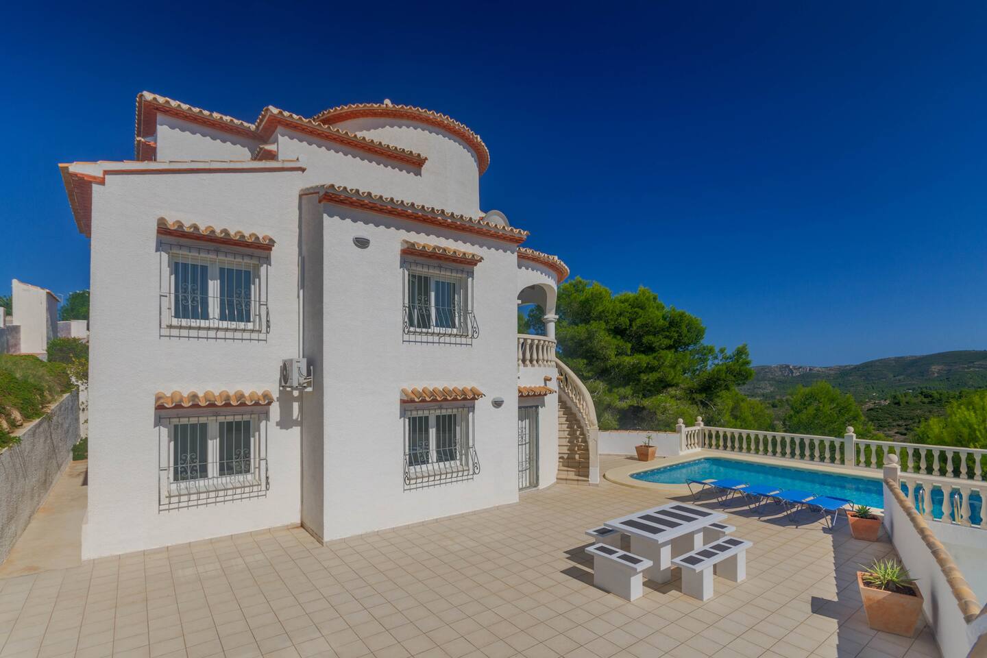 This Tranquil Villa sleeps up to 6 guests, in a 3 bedroomed spacious villa. It boasts private swimming pool, air con & WiFi, Freesat English TV, Dishwasher & Washing machine . The stunning beaches of Javea & Denia & Le Sella Golf Course are a short drive away.
